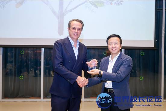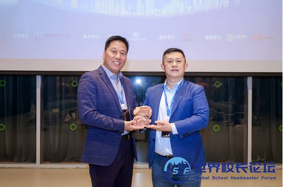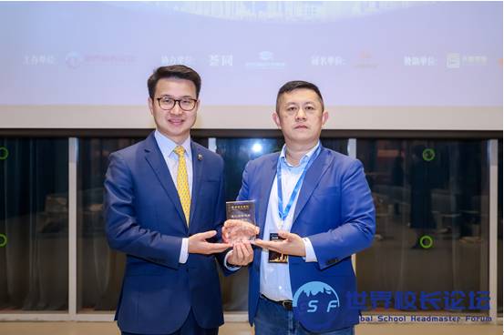 Xu Zhiwen, Secretary-General of the Global School Headmaster Forum (GSHF), honored Qian Lang, Chinese Principal of Harrow International School Shenzhen, with the Outstanding Headmaster Award